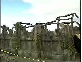4/6/08:Updated Episode Speculation from TPR 4/6/08: A band of rebel Cylons holds President Roslin hostage while attempting to lure the Final Five out of hiding inside the Galactica and the human fleet. From SciFi Channel 3/22/08: io9 previously reported this a couple weeks ago and now they are reporting it again along with some other nuggets. They claim that Kara will find her own body in a crashed ship. She'll then plant some fake dogtags and burn it all. Leoben is also supposedly with her when she "finds herself." Tigh also supposedly is "in the water screaming for Ellen" and Tyrol flashes back to a past life. From io9[We just can't buy this spoiler just yet, but io9 seems pretty intent on it. We will throw in that this is similar to the whole Count Iblis/Ship of Lights storyline from the old BSG. Starbuck, Athena and Apollo found Count Iblis' crashed ship with his body and he turned out to be the devil. So would this make Kara the devil? And when do we see the Ship of Lights?] 11/14/07: Screencaps from a report on GlobalTV BC (British Columbia) following a severe windstorm on Monday (11/12/07). Sets that were built to serve as ancient ruins were damaged. The BSG crew were going to attempt to salvage and repair what they could ain hopes of resuming filming on the set later in the week. We're assuming that this set would be used for both parts of the mid-season cliffhanger.