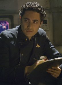 Gaeta seems to be keeping an eye on something. [Apparently, Gaeta spies in the CIC until his opportunity present itself.]