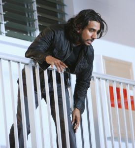 Sayid looks down. [This must be after he struggles with whoever and they fall.]