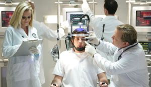 Brad and Sylvia, now revealed to be Fulcrum agents, have strapped in Chuck to watch the Dark Intersect.